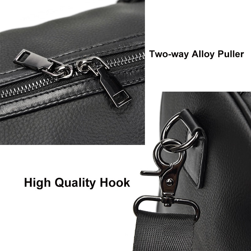 Bolsa de Viagem: Mochila de Viagem Estilo: vintage Origem: China Continental Ocasião: Versátil Composição do material: 100% couro legítimo Material principal: Couro genuíno Largura do produto: 23cm Peso da peça: 1,5kg Tipo de item: bolsa de fim de semana de couro unissex, bolsa de viagem, bolsa de bagagem de mão, bolsa de viagem Tipo de Item: Bolsas de Viagem Comprimento do artigo: 45 cm Altura da peça: 25cm Estrutura interna 1: um bolso com zíper, três bolsos abertos, Dureza: macio Gênero: Bolsa de Viagem Feminina Masculina Unissex Gênero: HOMENS Característica: Resistente ao desgaste, anti-roubo, fundo com proteção de rebite Cor: bolsa de couro genuíno preta e marrom Tipo de Fecho: Zíper Bolsa: bolsa de viagem com zíper