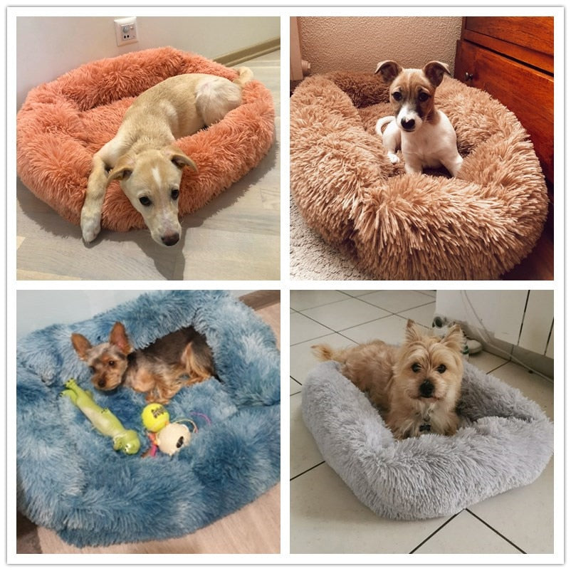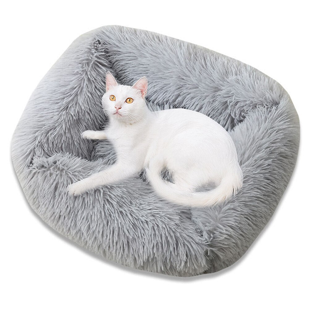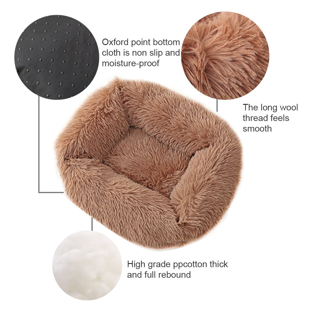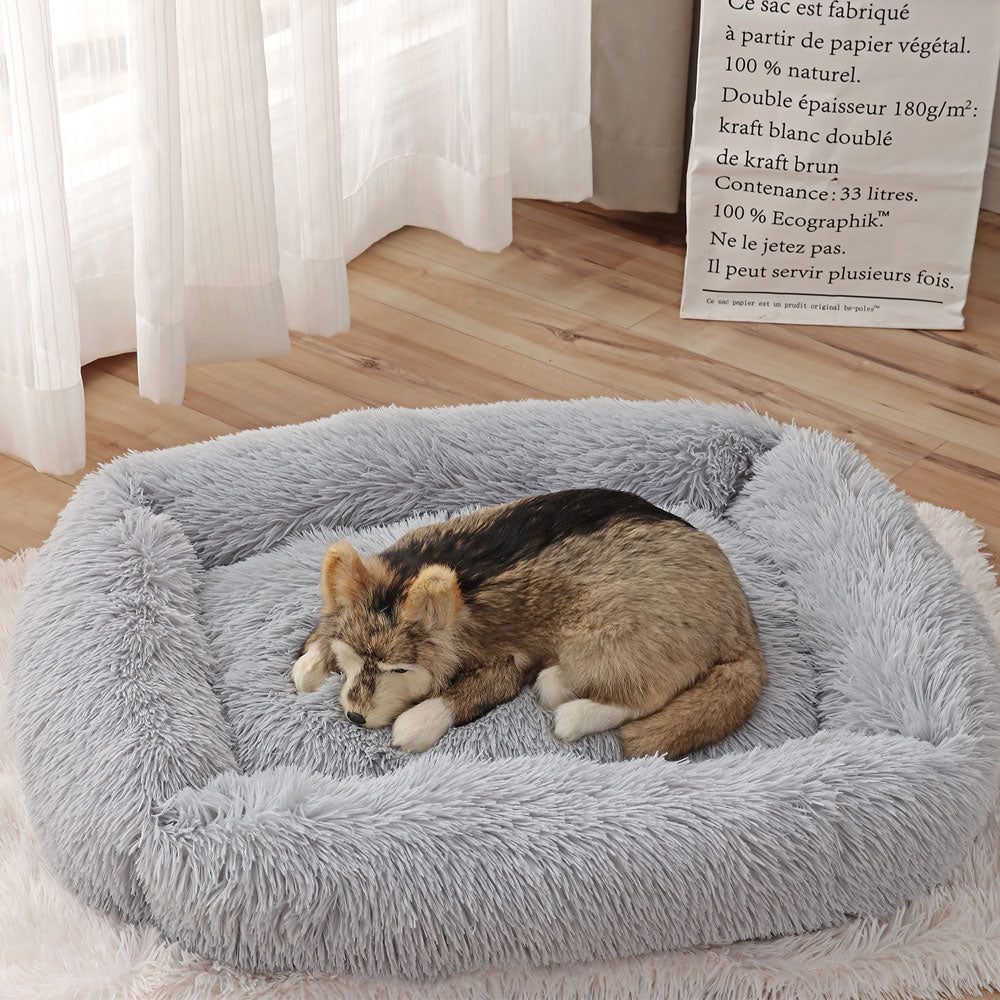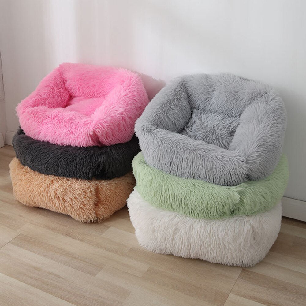 Camas quadradas para cachorros longas de pelúcia de cores sólidas