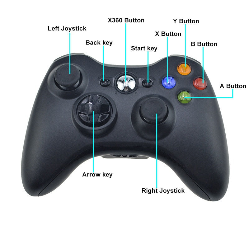 Controlador de jogo sem fio/com fio para Xbox 360 Gamepad Joystick para X box 360 Controle Joypad para Win7/8/10 PC 2.4G SEM FIO PARA XBOX 360 Características: Tecnologia sem fio de 2,4 GHz com alcance de 30 pés Use até quatro controladores simultaneamente em um console Feedback de vibração ajustável para maior duração da bateria Novos botões de ombro esquerdo e direito são projetados para facilidade de uso Excelente novo visual com acabamento em preto fosco e detalhes em brilho Use o botão Guia do Xbox 360 para acompanhar seus amigos, acessar seus jogos e mídia ou ligar e desligar o Xbox 360 Incluído no Pacote 1 x controlador sem fio para Xbox360 Como conectado ao host do Xbox360: 1. Instale 2 pilhas AA ou bateria especial para 360 na parte de trás do cabo. 2. Inicie o gamepad sem fio e o host simultaneamente: pressione e segure o botão de navegação no meio do gamepad sem fio até que o gamepad abra. 3. Pressione o botão de verificação de código na frente da alça por 3 segundos e os quatro LEDs no círculo da tecla de navegação piscam rapidamente e estão no estado de pesquisa. 4. Pressione a tecla de correspondência de código do host 360 ao mesmo tempo, os quatro LEDs do host piscarão rapidamente. Depois de combinar o código com o identificador, o primeiro LED do identificador e o host acenderão constantemente. Ao conectar as quatro alças, 1.2.3.4 sucessivamente, as quatro luzes estão sempre acesas