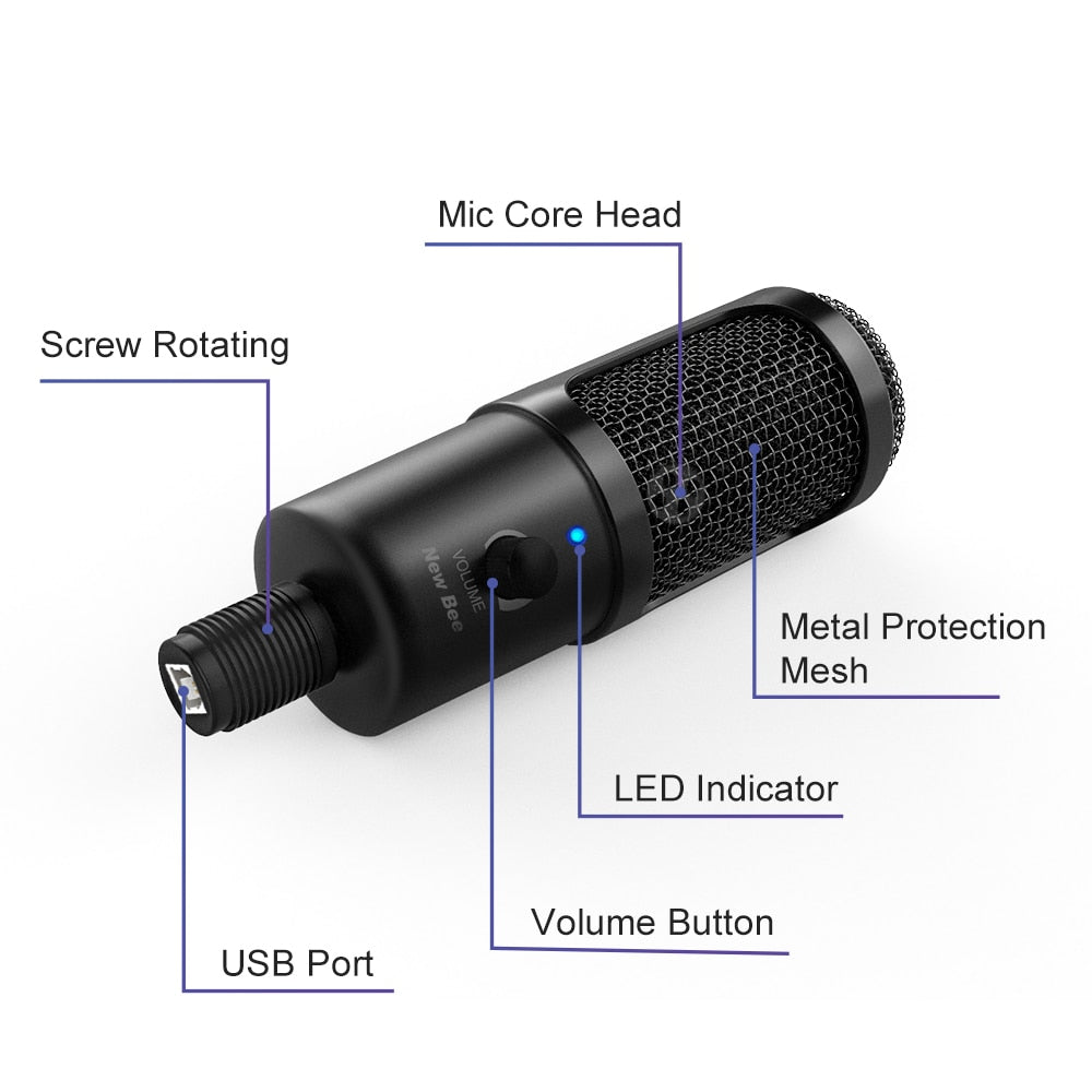 ESPECIFICAÇÕES Uso: microfone de computador Tipo: microfone USB/microfone de computador/microfone condensador/microfone de gravação Transdutor: Microfone Condensador Adequado para: transmissão ao vivo/gravação de instrumentos/reunião online/estúdio Estilo: mesa Tipo de Conjunto: Microfone Único Relação S/N: Mais de 58dB Fonte de alimentação: 5V Padrões Polares: Cardióide Pacote: Sim Origem: China Continental Número do modelo: NB-DM18 Peso do microfone: 460g Comunicação: COM FIO Cor preta Certificação: CE Nome da marca: nova abelha