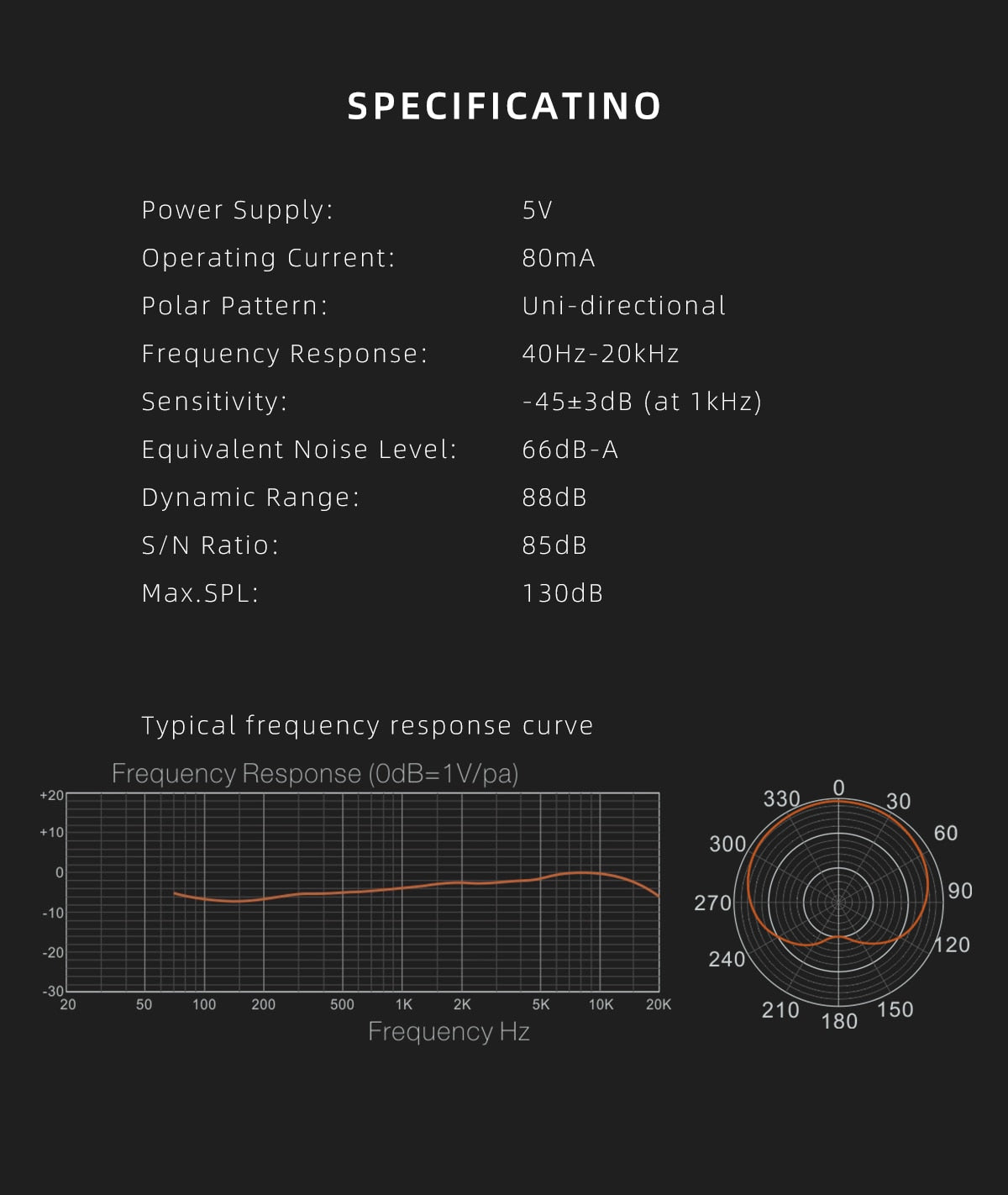ESPECIFICAÇÕES Uso: microfone de computador Transdutor: microfone de eletreto Estilo: mesa Tipo de Conjunto: Microfone Único Sensibilidade: -45±3dB (a 1kHz) Fonte de alimentação: 5V Padrões Polares: Cardióide Padrão Polar: Unidirecional Pacote: Sim Origem: China Continental Corrente operacional: 80mA Resposta de frequência: 40Hz-20kHz Nível de Ruído Equivalente: 66dB-A Faixa Dinâmica: 88dB Comunicação: COM FIO Certificação: CE Nome da marca: FIFINE
