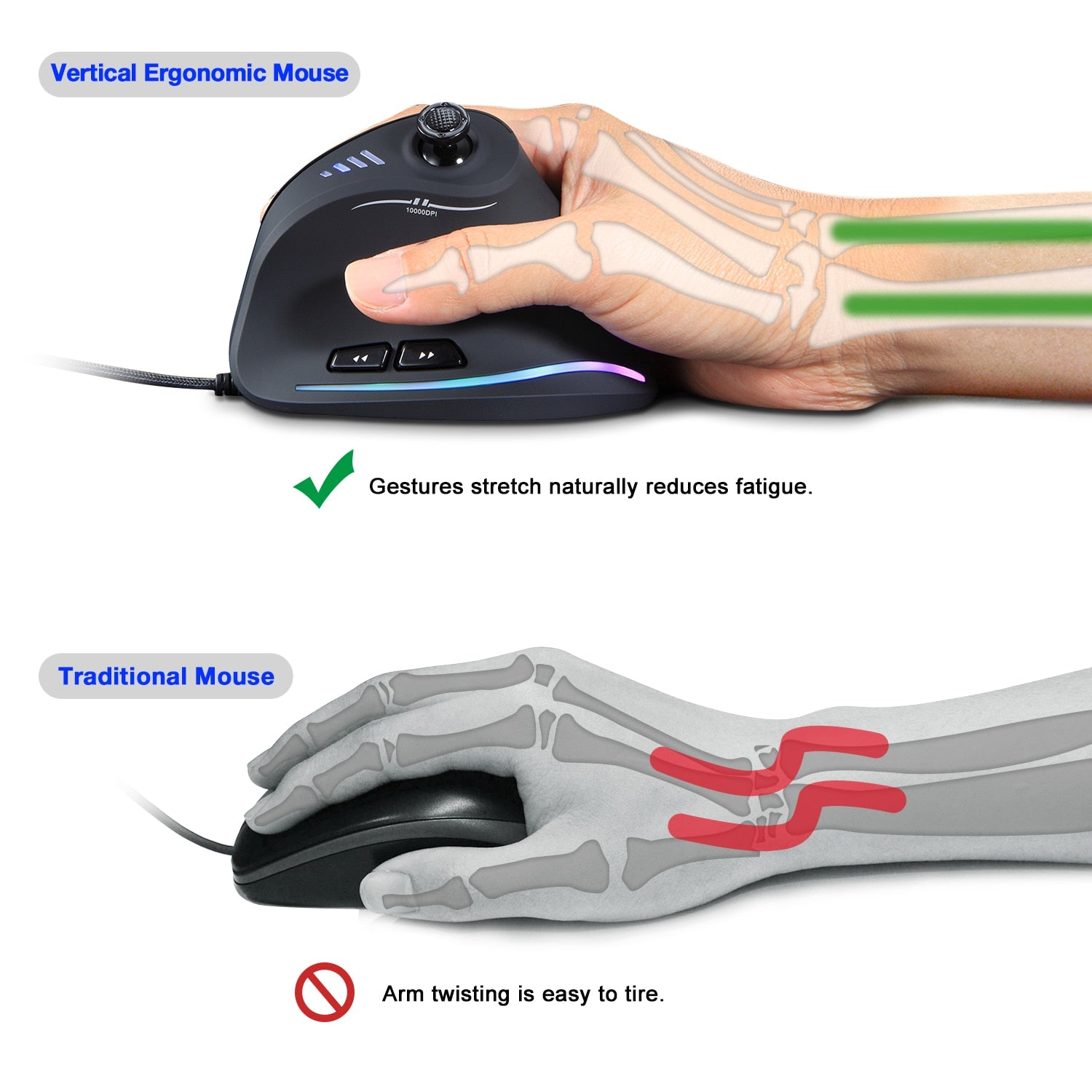 Lefon Vertical Gaming Mouse Com Fio RGB Ergonômico USB Joystick Mouse Programável Laser Gaming Mouse 10000 DPI Atualizado para Gamer Descrição: Este é um motor a laser. Comparado com os motores fotoelétricos tradicionais, tem melhor desempenho, posicionamento mais preciso e sem perda de quadro em telas 4K 8K. Design vertical ergonômico. Design vertical ergonômico. O design vertical oferece melhor suporte para o seu antebraço, minimizando a dor no pulso que pode vir da torção. Sensor Pixart PMW3325 IR e nível de 5 DPI ajustáveis 1500-2500-4000-7000-10000 DPI. Cinto letreiro RGB que muda de cor em ambos os lados. Programável e personalizável.11 botões programáveis e memória integrada. Amplamente compatível com Windows XP (x64)/Vista/7/8/10/Linux. Garantia e suporte: garantia de um ano, fornecemos suporte técnico completo após a venda e qualquer dúvida sobre o produto, sinta-se à vontade para entrar em contato conosco. Características: Velocidade variável de cinco níveis de DPI. Cinco níveis de DPI ajustáveis, 1500-2500-4000-7000-10000DPI respectivamente, de baixo a alto. Quatro luzes indicadoras de DPI estão configuradas, a primeira luz está na 1ª, a segunda luz está na segunda e a quarta luz está na quinta (10000DPI). Uma luz acesa indica o primeiro nível, duas luzes acesas indicam o segundo nível, todas as quatro luzes acesas indicam o quinto nível (10000DPI). Chip fotoelétrico usando PAW3325. Cinto letreiro RGB que muda de cor em ambos os lados. IBM ou computador compatível Uma porta USB disponível, Suporte para Windows 2000/ME/XP(x64)/Vista/7/8, Mac OS X(acima de V10.4) (Observação: o padrão citado neste manual é apenas para fins de descrição da função. Consulte o produto para compra.)