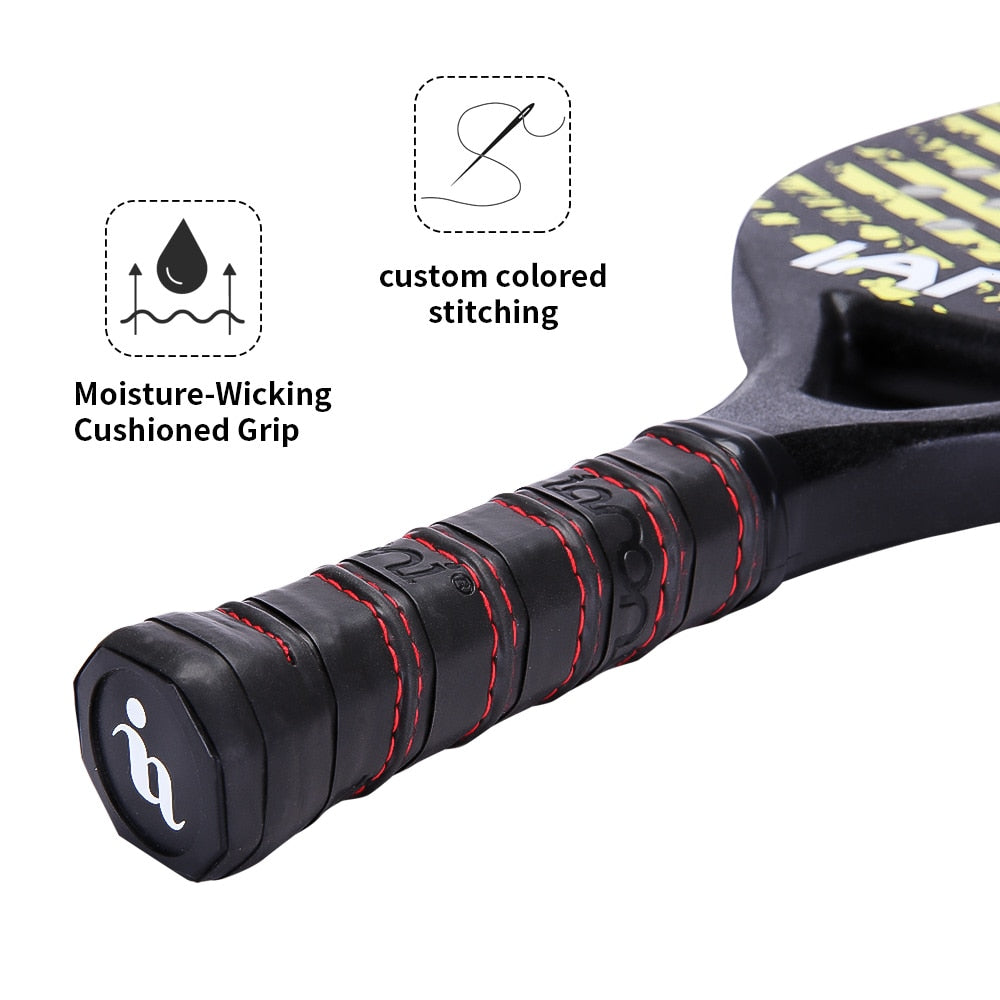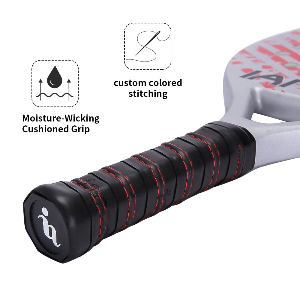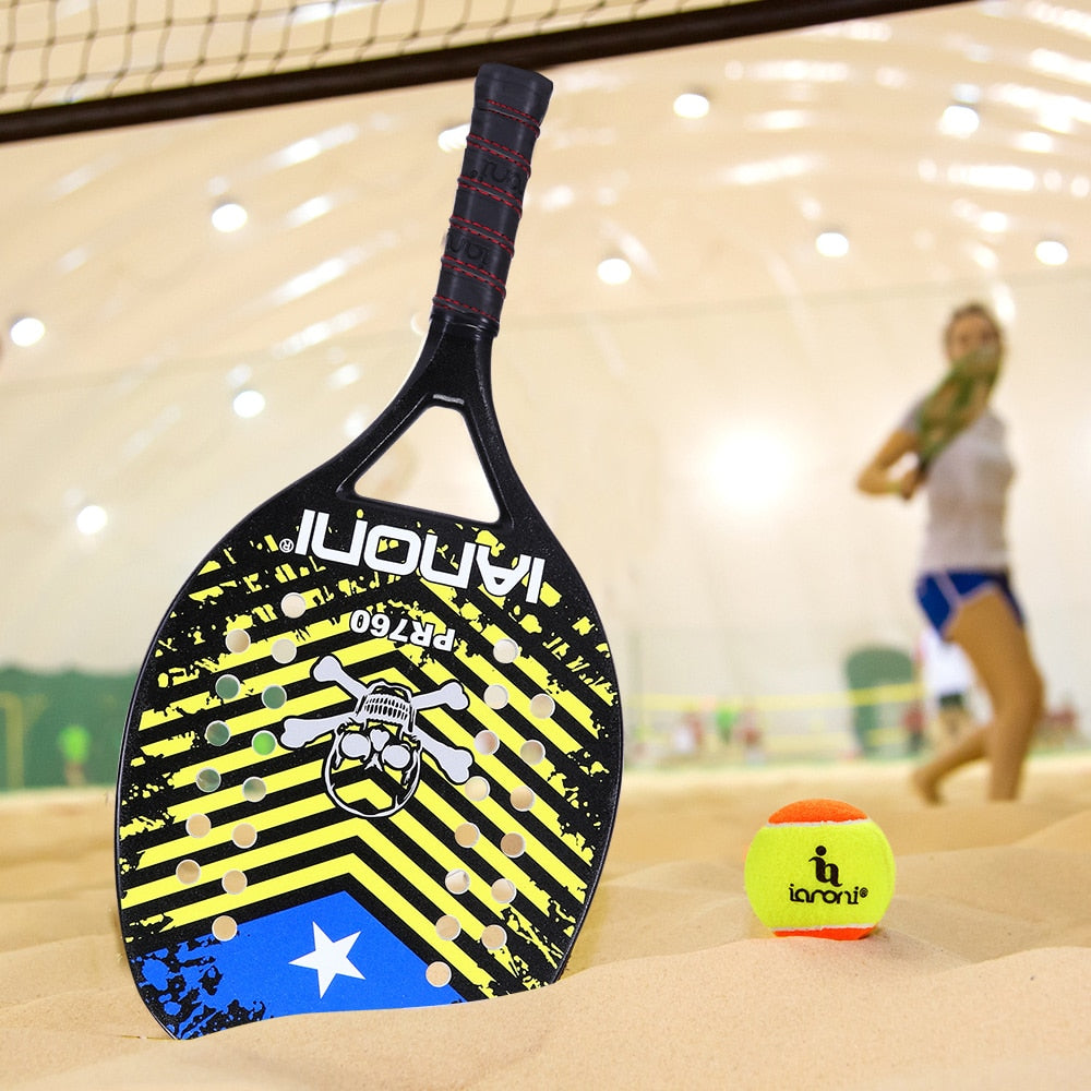 2022Adulto Professional Full Carbon Beach Tennis Raquete Raqueta Facial EVA Macio Com Bolsa Equipamento Unissex Material: 50% fibra de carbono, 50% fibra de vidro, camada intermediária de espuma EVA Peso: raquete pesa 320±10g, raquete pesa 125g, bolsa pesa 13g Comprimento: 47-50 (cm) Espessura: 2,0-2,2 cm Área de tiro: 27,7 cm × 23,3 cm Modelo: PR760 Material: 50% fibra de carbono, 50% fibra de vidro, camada intermediária de espuma EVA Categoria de comprimento da raquete: Grau regular Dureza: Difícil (jogador de ação/força pequena) Classificação da Face da Raquete: Superfície da Raquete MP (Universal) Comprimento: 48 (cm) Parede Externa: Pintar Interior: espuma EVA Peso: cerca de 320 + _10 (g) Comprimento: Aproximadamente 48,5 cm Espessura: 2,2 cm Tamanho: cerca de 28x23 cm lista de embalagem:1 raquete 1 capa