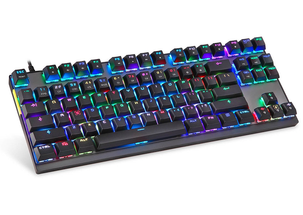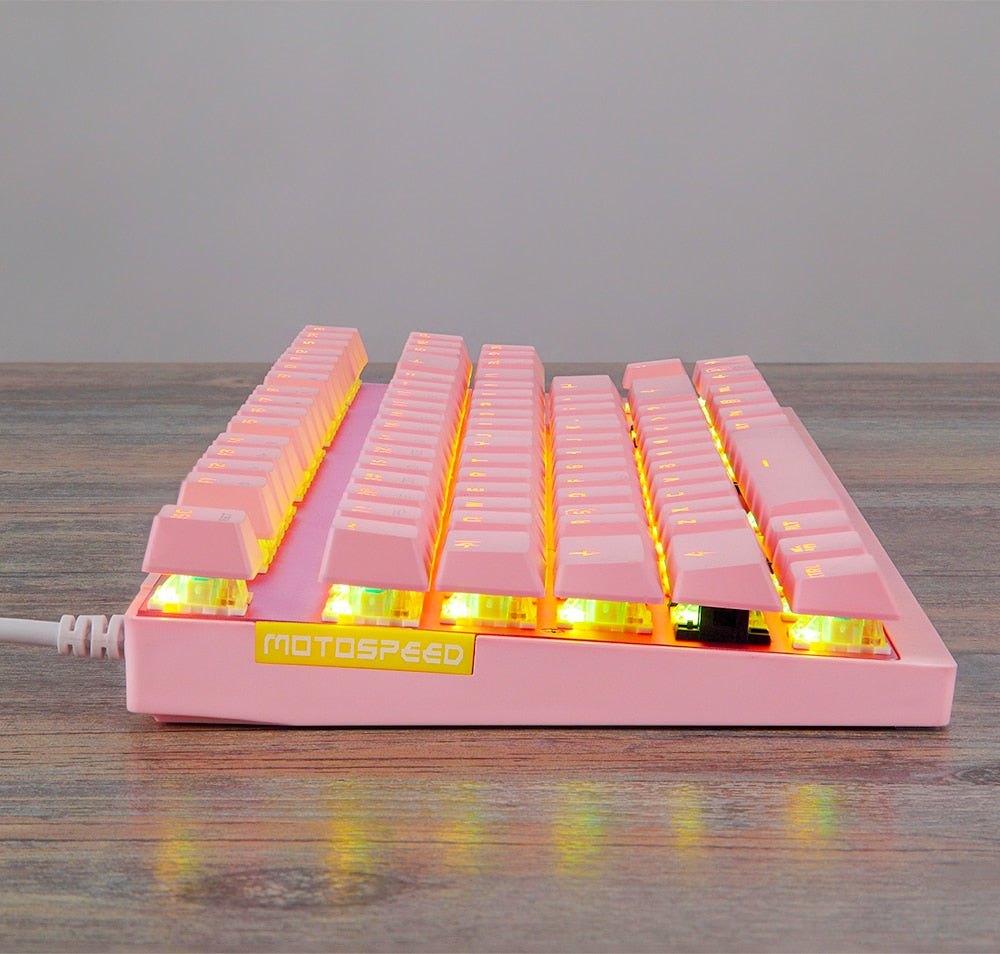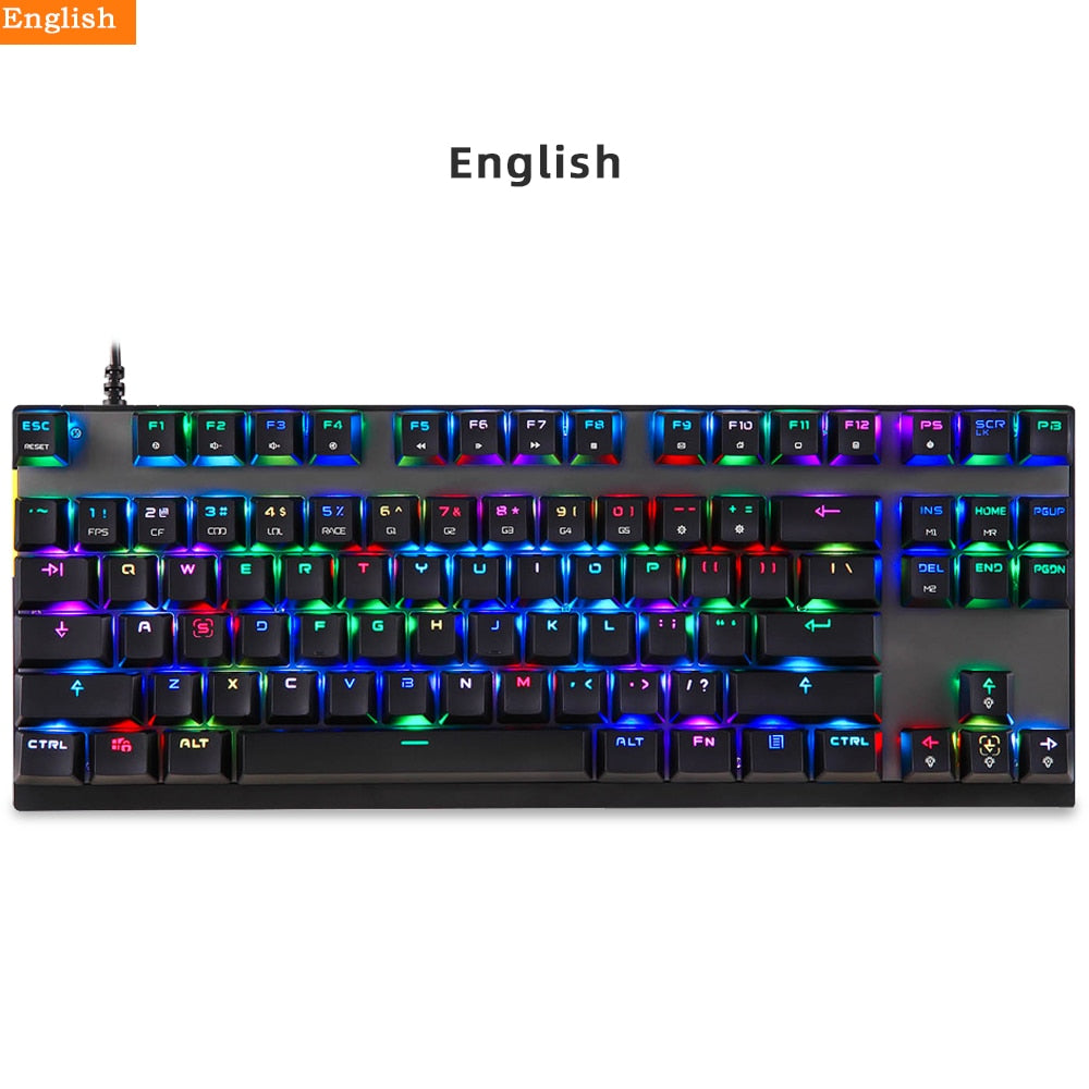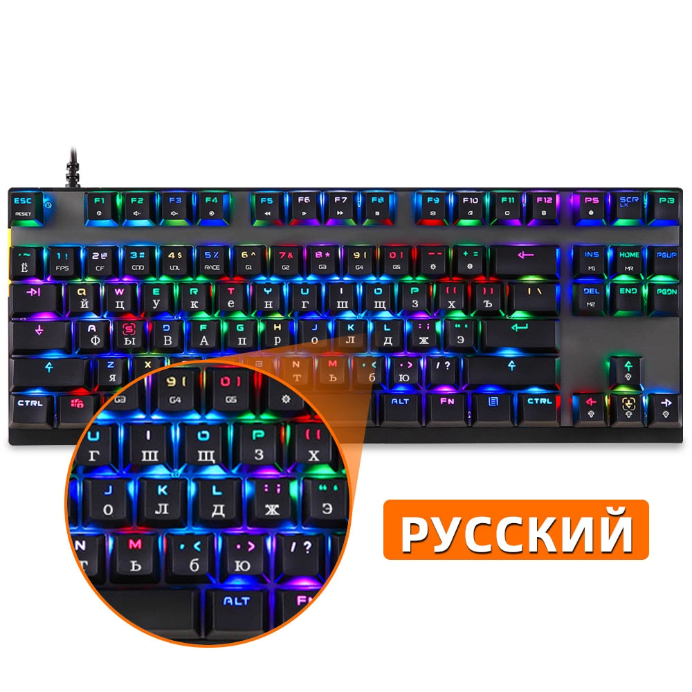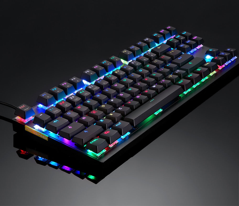 ESPECIFICAÇÕES Apoio de pulso: Não Tipo: COM FIO Fabricante de interruptores: OUTEMU Interruptores Hot swap: não Estilo: Padrão, Fino, Ergonomia, Multimídia, Jogos, Mini, Para Laptop, Teclado Numérico, para Tablet, Teclado Multifuncional Origem: China Continental Estilo de Operação: Mecânico Idioma: europa,BRASILEIRO,russo,japonês,Reino Unido,francês,hebraico,inglês Idioma: espanhol, hebraico, árabe, português Material do porta-chaves: Plástico ABS Teclado padrão: 87 teclas Tipo de Interface: USB Teclado de tamanho completo: Sim Certificação: CE Nome da marca: MOTOSPEED Tipo de retroiluminação: MULTICOLOR Marca do corpo do eixo: Outemu Aplicação: Desktop,Laptop,Número,Tablet