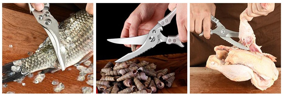 ESPECIFICAÇÕES Material do punho: Alumínio Peso: 245g Tipo: facas Adequado: Frango Ganso Peixe Tamanho do produto: 25cmX6cm Origem: CN (Origem) Material: aço inoxidável Tipo de faca: TESOURA Adequado para 2: tesoura de cozinha Ajuste para 1: tesoura de peixe Características: fivela de segurança Característica: Ecológico Certificação: CEE Certificação: CIQ Certificação: CE / UE Certificação: SGS Certificação: LFGB Nome da marca: MYVIT Material da lâmina: aço inoxidável 4Cr13 perguntas e respostas: 1. Qual é o material da tesoura de cozinha? O cabo da tesoura de cozinha é feito de liga de alumínio, a lâmina é feita de aço inoxidável. 2. Posso ser usado para cortar objetos macios, como papel, barbatana de peixe, saco de embalagem e assim por diante sim, a parte frontal da tesoura é projetada com uma área afiada, que é usada especialmente para cortar objetos macios. A segunda metade da tesoura é uma poderosa área de corte, usada especialmente para cortar objetos duros. para detalhes, pls verifique a foto abaixo. Área de Corte de Carne------ A parte frontal da tesoura é projetada com uma área afiada, que é especialmente usada para cortar objetos macios (como papel e barbatana de peixe). Área de Osteotomia------ A segunda metade da tesoura é uma poderosa área de corte, usada especialmente para cortar objetos duros. Este tipo de tesoura de cozinha é dividido em uma área de corte afiada e uma área de corte de osso; a área de corte afiada é projetada com serrilhas, a aresta de corte da serra de dente é mais nítida e a comida e a aresta de corte são mais adequadas para antiderrapante. A zona de cisalhamento do osso é projetada com curvatura. O arco fará com que os objetos duros segurem melhor e sejam antiderrapantes. Ao mesmo tempo, usando o modo de mola, você trabalhará mais rápido e com menos esforço.